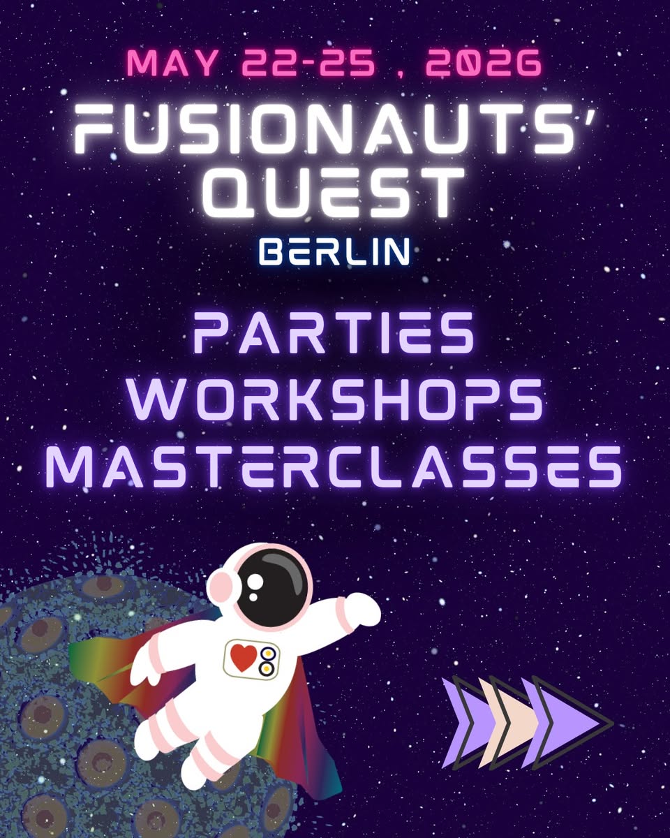 The Berlin Convergence Lab is a five day intensive dance training taking place after the fusion dance festival Fusionauts’ Quest in Berlin, Germany. It’s meant for experienced dancers and has a video audition to attend.