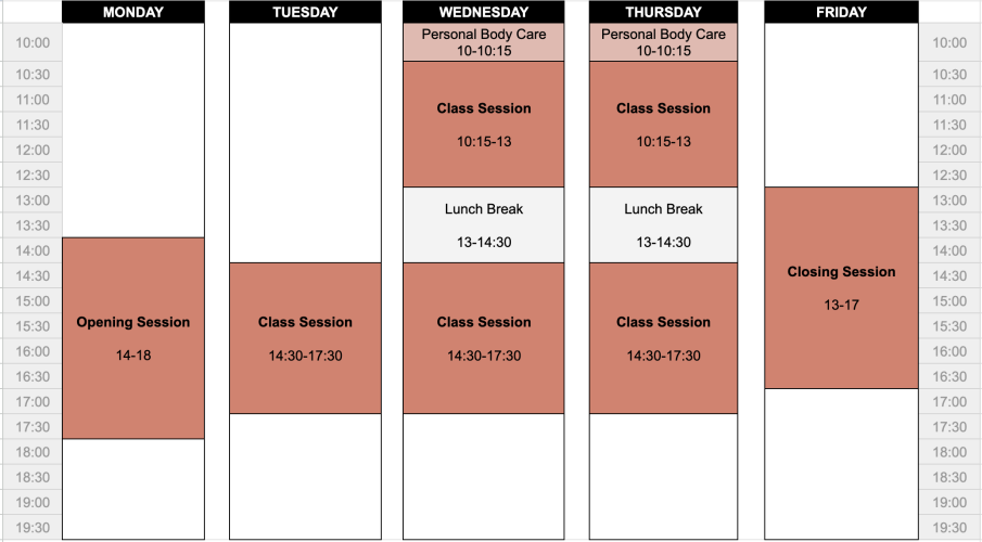 - You prefer learning through a small amount of material with lots of integration time (for example: a few hours a day plus social dancing). That learning style is great! But it’s not this intensive week. (Check out Camp Kaleidoscope in Bristol instead if this is you.)