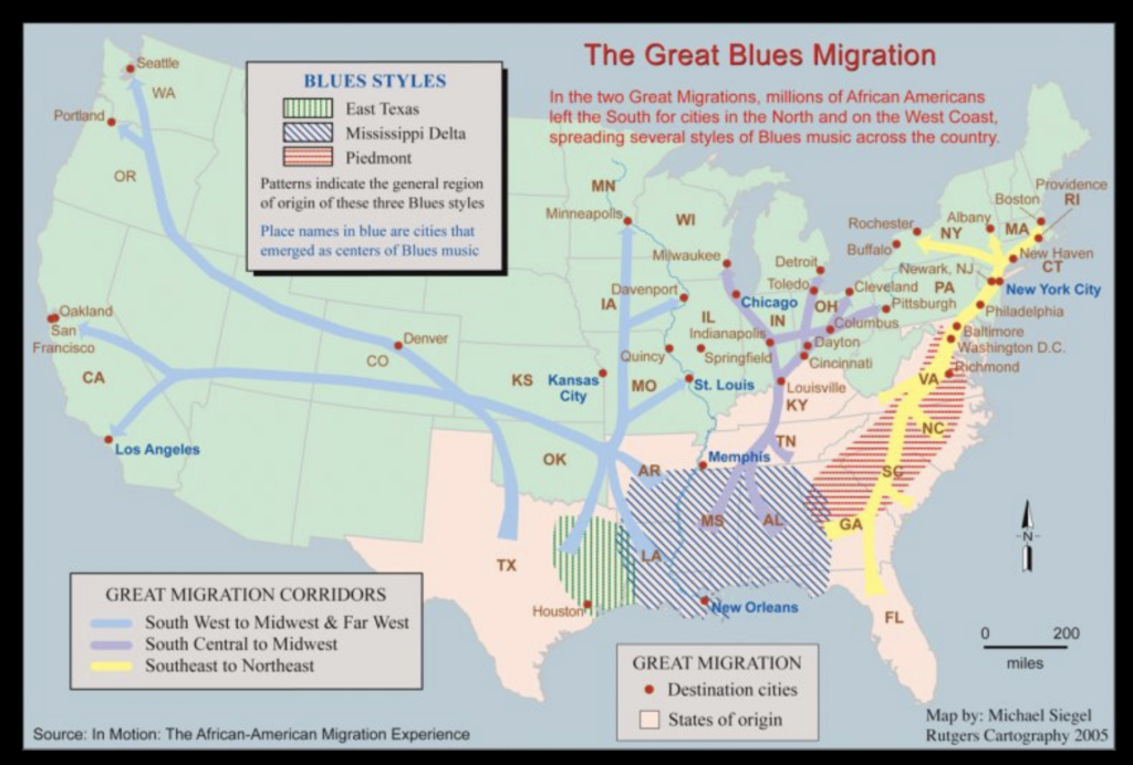 As you explore the chart below, know that many artists crossed genres during their careers, like Muddy Waters who went from Mississippi Delta to Chicago. Also know that not all songs by a particular artist will be considered within the blues music we dance to, just like live musicians today. They are artists making their art.